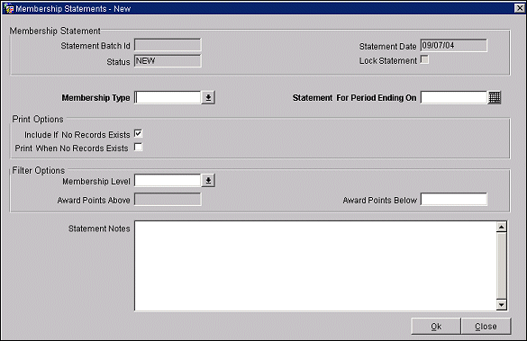 Membership Type. Select from the drop down list of values the membership type you would like to create statements for.