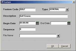 Type. Select the type of feature from the drop down list. Select General (for common or generic purposes) or Meeting (for convention or sales and catering related purposes) from the list of values.