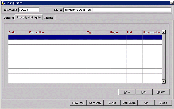 The Configuration screen is used to manage and organize information that will be displayed online about CRO's, single, and multiple properties. Depending on the OPERA module and its configuration, you can access the Configuration screen through the following menu options: