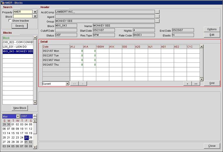 The first time you look at the Original Block Grid all cells are blank. You need to position the cursor on a date and room type to block rooms. To enter the number of rooms to block for that room type on that day, enter them in the grid cell.