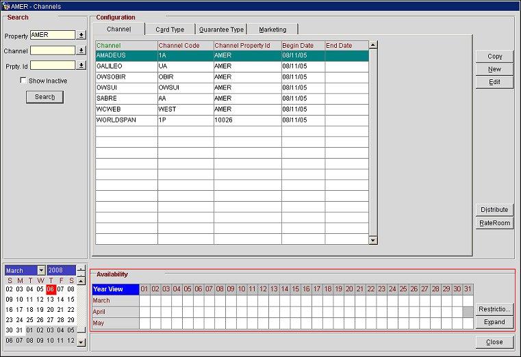 The Availability area allows users to view and update rate availability for up to two months beyond the current month.