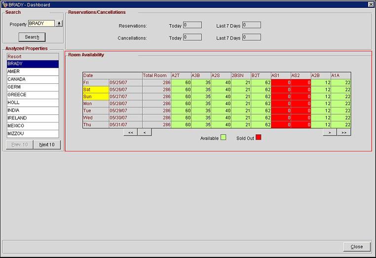 The Room Availability area displays the room availability at a property for a specified date and room type.