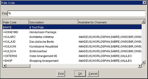 The rate codes displayed are configured in the Rate Code Template in ORS (Configuration>Rate Management>Rate Classifications>Rate Code Template).