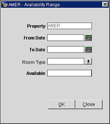 Range. Select this button to access the Availability Range screen and make inventory adjustments for a range of dates.