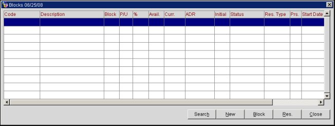 Blocks. Select this button to access the Blocks screen and configure business blocks for a specific date.
