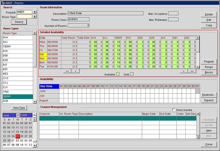 Understanding the Detailed/Property Availability Areas of the Rooms Screen