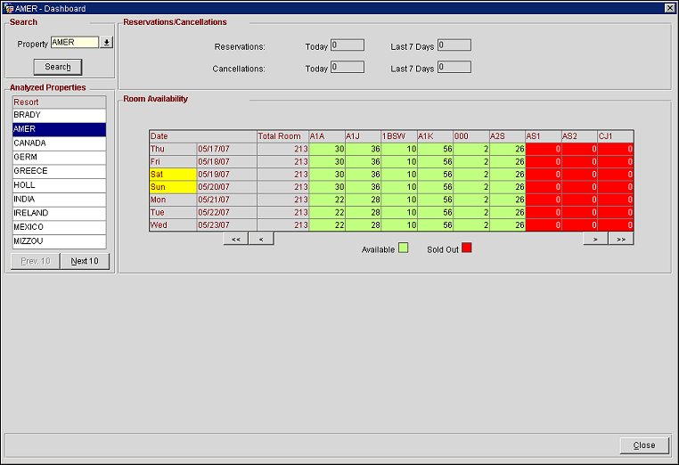 Displays the reservations and cancellations for a specific property. |