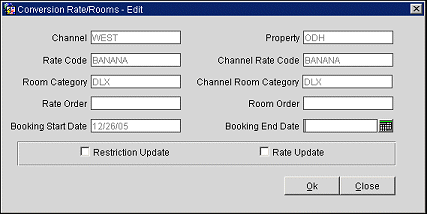 Rate Code. Select this button to open the Conversions Rate/Room window.