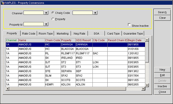 Property. Select the properties that have been setup for the channel. If a chain code is selected as described above, the list reflects the converted properties that belong to that chain. If the chain code is selected and property field is left blank, all properties for the chain are displayed.