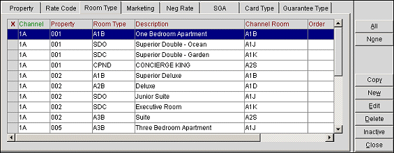 Select this tab to associate an Opera room type to the GDS/ADS channel room type. From this tab, you can view the combinations of rooms and rates according to the room type.