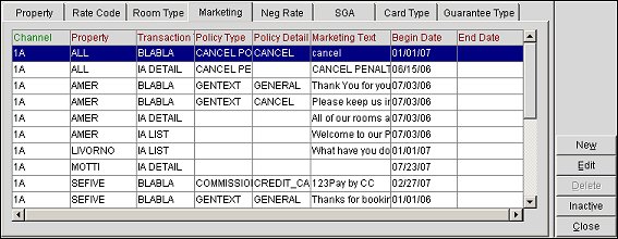 Select this tab to create or edit property marketing text used to give the travel agent information about your property.