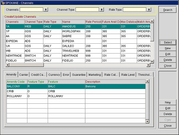 Opera channel configuration is required to ensure that smooth and accurate transactions are processed between the GDS/ADS and Opera systems. You need to map GDS/ADS host codes to Opera codes, and specify what, how, and when information is sent to GDS/ADS users. This is accomplished by selecting the appropriate tabs in the bottom grid.
