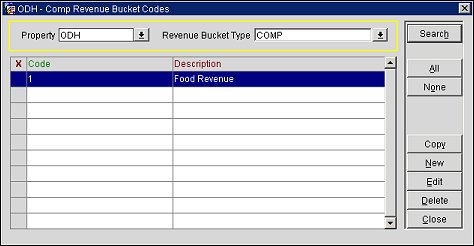 Copy. Select the code(s) you wish to copy to another property and select this button. A list of properties appears. From the list choose the properties to copy the selected comp revenue buckets to.