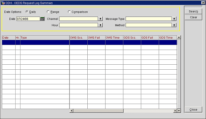 If the Opera Access Point Utility Service is running, the OEDS Request Log Summary screen allows you to monitor each request through Opera ADS, GDS, Opera Web Suite, and User Interface. To access the OEDS Request Log Summary screen, select Setup>Configuration>Channels>Monitoring.