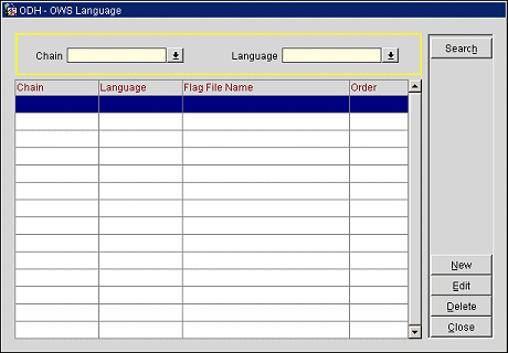 Select the chain and/or language and select the Search button. The results appear in the grid.