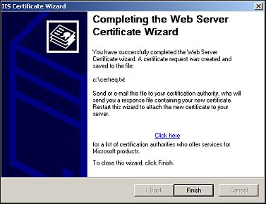 13. The Completing the Web Server Certificate Wizard dialog box appears.