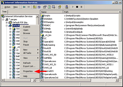 2. Click the + to expand the tree. Then, right-click on Default Web Site and select Properties.