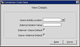 Opera Activity Location. Select the Opera activity location from the list of values. The activity locations are defined in Opera PMS.