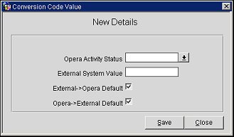 Opera Activity Status. Select the Opera activity status from the list of values. The activity statuses are defined in Opera PMS.