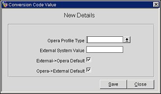 To configure the Profile Type conversion code, highlight the conversion code in the Conversion Code column and select the New button. The Conversion Code Value screen appears.