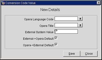 Opera Language Code. Select the Opera language code from the list of values. The language codes are defined in Opera PMS.