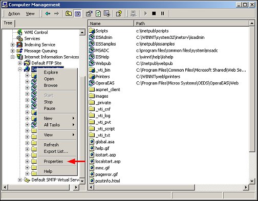 3. Right-click on Default Web Site and select Properties.
