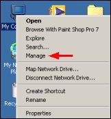 1. Right-click on the My Computer icon and select Manage.