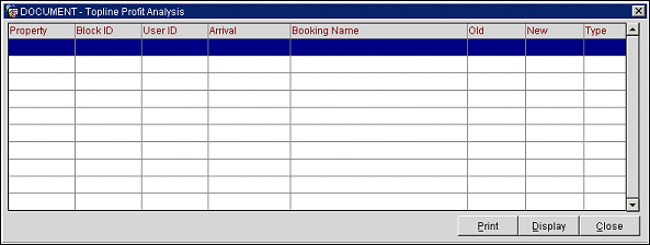 Old Analysis: OPERA displays the results of the two most recently requested Preferred Arrival date yield analyses until they are deleted by nightly TLP processing. The older of the two analyses is called the Old Analysis. (If this screen is displaying the first analysis to be performed on this business block today, no Old Analysis will be available.)