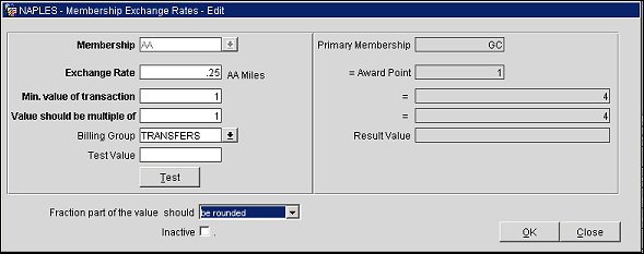 Membership. Select the membership from the LOV that you would like to create the exchange rate for with the Primary loyalty program. This field is available when creating a new exchange rate; read-only when editing an exchange rate.