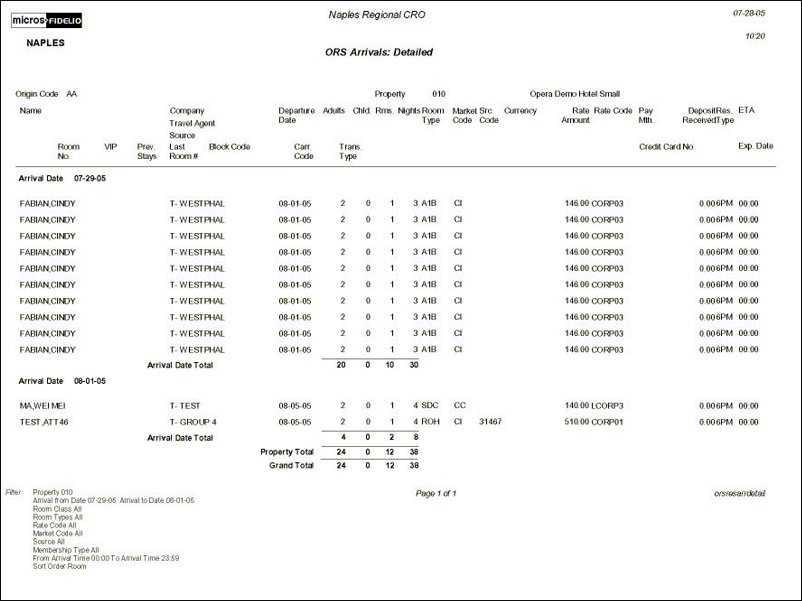Property. Select the property(s) whose arrival details you want to view, or leave the default to ALL.