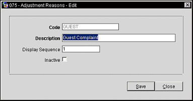 Inactive. Select the check box to inactivate the adjustment reason. When inactivated, the reason will not be displayed unless specified.