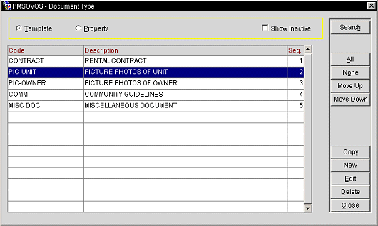 Template. Available when the OPP_MHOT Multi-property add-on license code is active, select this radio button to see all of the document type templates that exist.