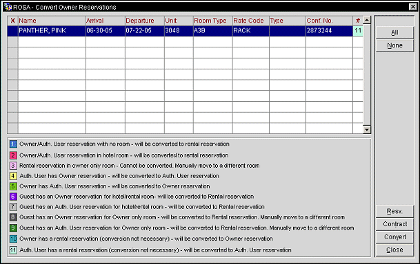 Close. Select to close out of the Convert Owner Reservations functionality.