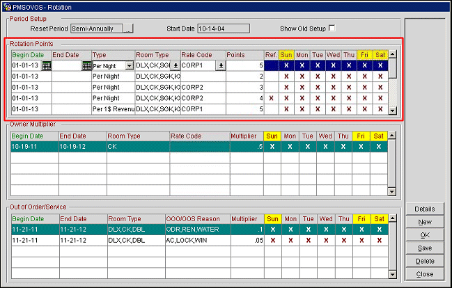 Note: With proper authorization, rotation points may also be recalculated at any time the property wishes by using the Rotation Points Recalculate button. See Rotation Points for details.