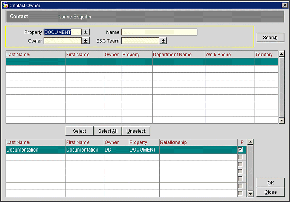 The Contact Owner screen serves multiple purposes in OPERA and appears in several places. In general, it is used to associate sales manager owners with profiles, business blocks, and activities.