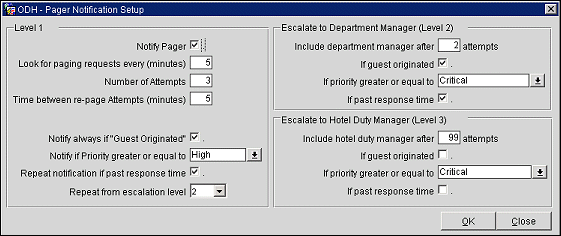 If guest originated. By placing an X in the box, all guest-originated quick tasks will be paged to Level 3. If this is checked throughout all other levels, all level contacts will receive a page.