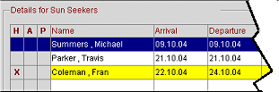 X. An X in this column indicates that you wish to attach the reservation to the agent or source. You can mark several reservations to attach at one time. Only those reservations for which a commission has not yet been paid can be selected. (If the commission associated with the reservation has already been paid, a Y appears in the Paid column.)