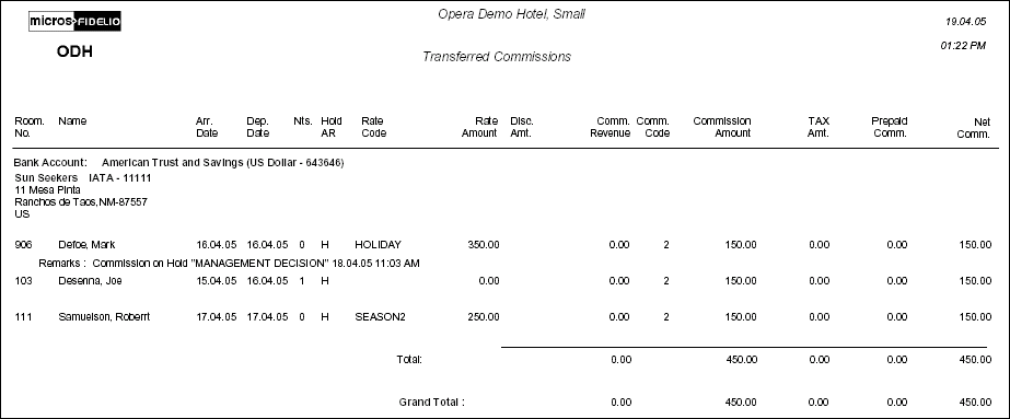 Note: Amount is shown in the bank currency. To determine this amount, the exchange rate is applied to the commission amount in the hotel currency; decimal places shown correspond to the number of decimal places appropriate for the bank's currency.