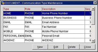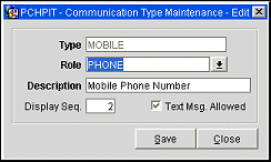 Close. Select Close to exit out of the Communication Type Maintenance screen.