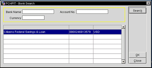 Account No. Enter the full or partial bank account number to search for.