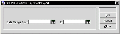Date Range From/To. Select the From and To dates for the range of positive pay checks.