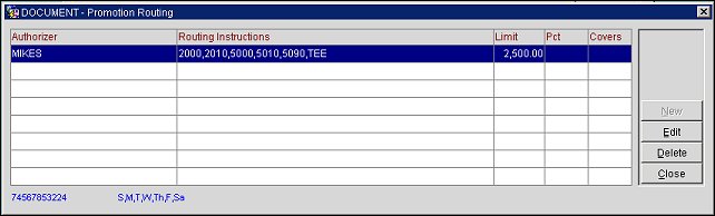 If promotion code routing has already been set up for this promotion code, the Promotion Routing screen appears. (Otherwise, the Promotion Routing - New screen appears.)