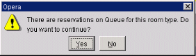 Note: The queue message is not displayed if the reservation being checked in has a room number already assigned to it, regardless of room type. This is due to the fact that the reservation has a specific room assigned to it and is not waiting on just any room type.