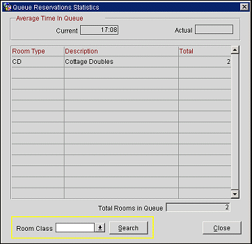 For room types included in the current queue, this screen shows the room type, the description of the room type, and the number of reservations in queue for that room type.