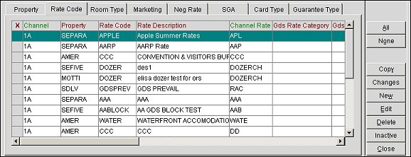 Inactive. Select to inactivate a highlighted rate code for the channel.