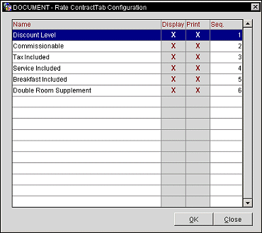 Print. An X will appear in the field, if the rate contract is to be included when printing reports pertaining to rates or contracts. To select or un-select, just click on the field.