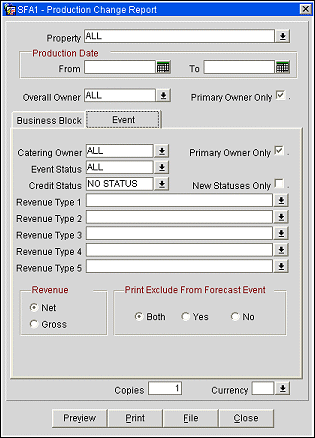 New Statuses Only. When checked, only those events will be reported that had a status change happening in the production period. Events that only had revenue changes done to them will be omitted.