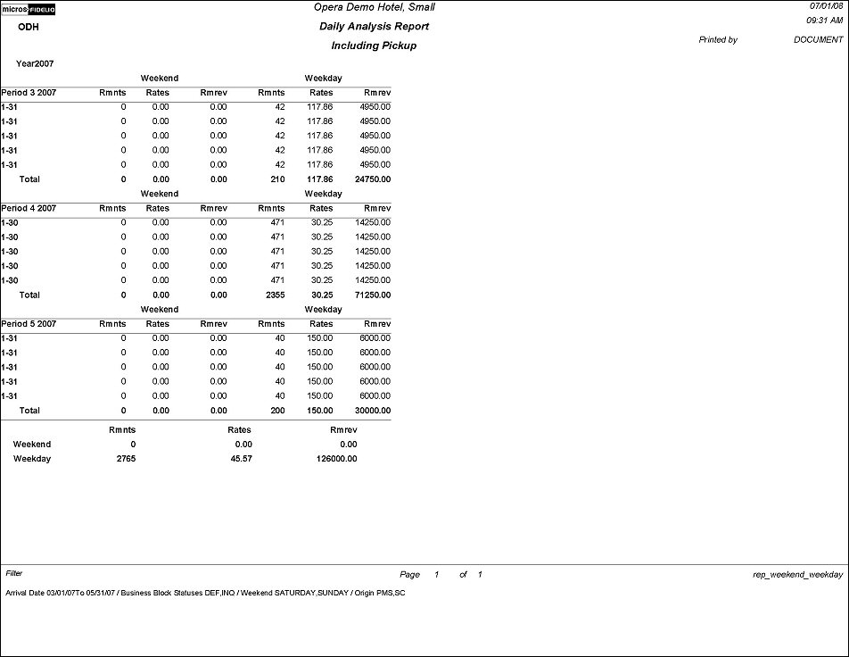 Daily Analysis Report – On-the-Books (REP_WEEKEND_WEEKDAY.REP with REP_WEEKEND_WEEKDAY.FMX)