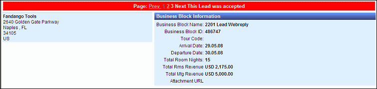 Confirm message to the property to which the business was awarded. The lead form will show "Confirmed Lead" in the title. When the Respond hyperlink is selected, the Web Lead reply page will open to the confirmed lead, which is clearly marked to show the new status.
