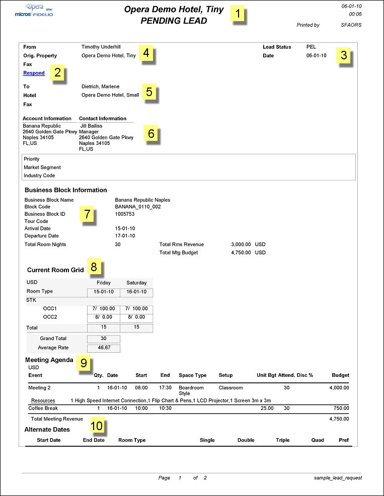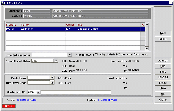 Depending on the SFA system configuration, it is possible to allow receiving properties to reply to the lead via a web page on the originating RSO or SFA center web server. With Web Lead Reply, the recipient has real-time access to an interactive web page that allows direct communication with the OPERA database. The Lead screen Current Lead Status, the Turn Down Code (if appropriate), the Rates and the Alternate Date Preferences are automatically updated based on recipient interaction with the Web Lead Reply web page.